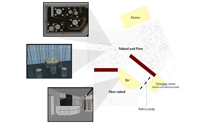 Guests will be offered a vegan and a non-vegan menu, and those who sit in the naked section will be offered lockers to put their clothes in as they change in to their gowns.