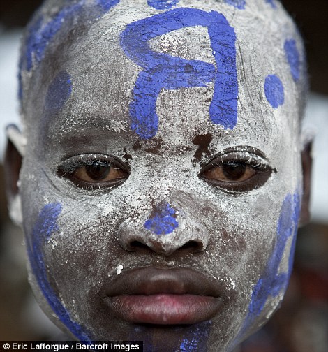 The 52-year-old snapper said: 'I like photographing tribal people, so I try my best to attend different ceremonies. It was at a ceremony that I realised you can see make-up used in so many occasions.'
