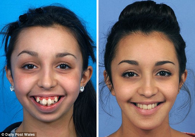 Transformation: Ellie Jones, 20, was born with a facial deformity that meant her teeth were not aligned[CN]