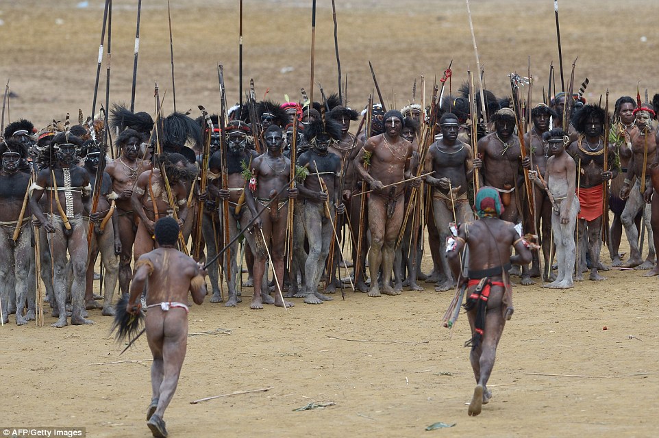 Every August the Dani hold mock battles with neighbouring tribes - the Lani and Yali peoples - to celebrate the fertility and welfare of the Papua province as well as upholding ancient traditions (pictured)