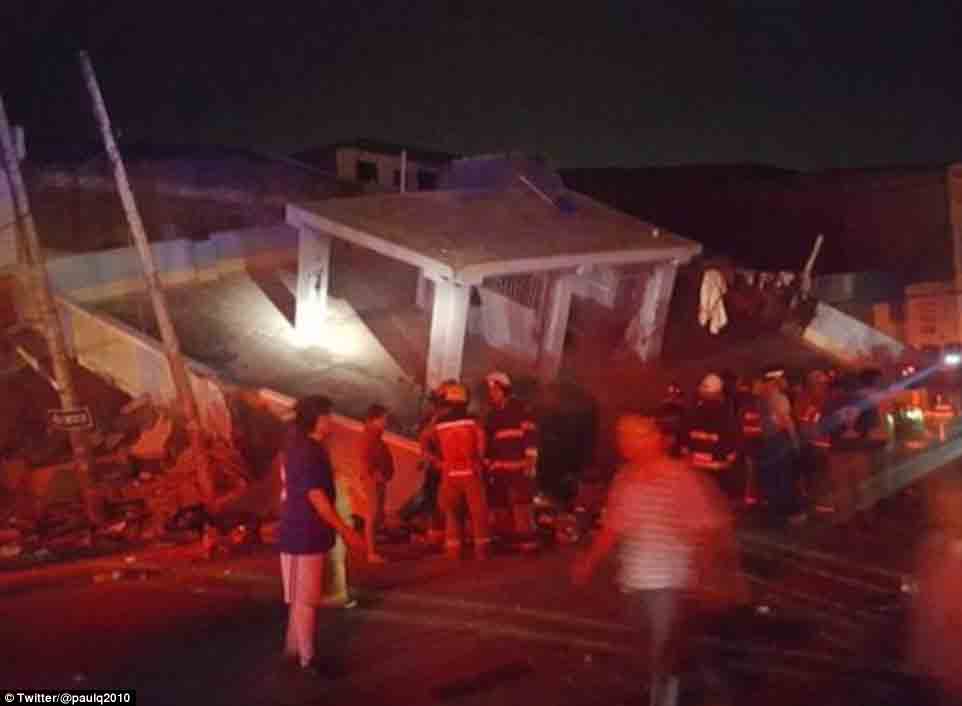 A collapsed bridge in Guayaquil, Ecuador, after the powerful earthquake hit the country